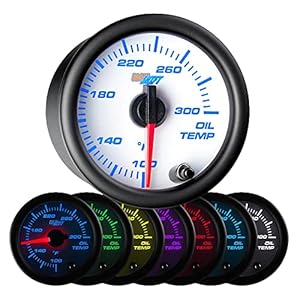 GlowShift White 7 Color 300 F Oil Temperature Gauge Kit – Includes Electronic Sensor – White Dial – Clear Lens – for Car & Truck – 2-1/16″ 52mm