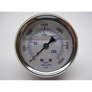 NEW STAINLESS STEEL LIQUID FILLED PRESSURE GAUGE WOG WATER OIL GAS 0 to 3000 PSI LOWER MOUNT 0-3000 PSI 1/4″ NPT 2.5″ FACE DIAL FOR COMPRESSOR HYDRAULIC AIR TANK