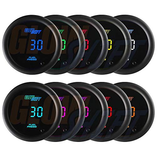GlowShift 10 Color Digital 30 PSI Fuel Pressure Gauge Kit – Includes Electronic Sensor – Multi-Color LED Display – Tinted Lens – for Diesel Trucks – 2-1/16″ (52mm)