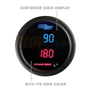 GlowShift 10 Color Digital 300 F Dual Intake Intercool Temperature Gauge Kit – Includes Electronic Sensors – 2 Multi-Color LED Displays – Tinted Lens – 2-1/16″ (52mm)
