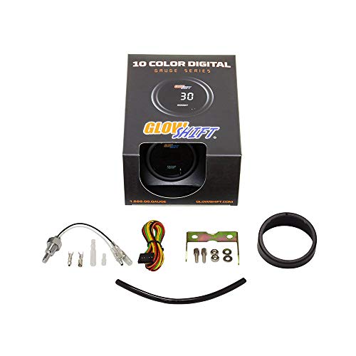 GlowShift 10 Color Digital 300 F Transmission Temperature Gauge Kit – Includes Electronic Sensor – Multi-Color LED Display – Tinted Lens – for Car & Truck – 2-1/16″ (52mm)