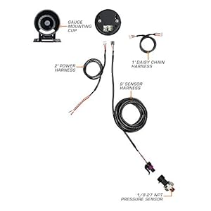 Includes 1/8-27 NPT Pressure Sensor, 9′ Sensor Harness, 2′ Power Harness, 1′ Daisy-Chain Harness, Dashboard Pod, Gauge Visor, Mounting Hardware & Installation Instructions