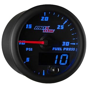 MaxTow Double Vision 30 PSI Fuel Pressure Gauge Kit – Includes Electronic Sensor – Black Gauge Face – Blue LED Illuminated Dial – Analog & Digital Readouts – for Diesel Trucks – 2-1/16″ 52mm